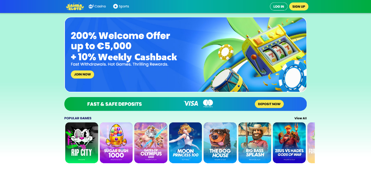 Íme a tökéletes iskolapélda egy egységes hangulat köré felépített kaszinónak. A Samba Slots név sem véletlen, márpedig amire utalnak, ahhoz hűen ragaszkodtak a kínálat és a dizájn tekintetében is. A Samba megnevezés révén a karneváli hangulatra és tematikára vezetnek rá, a dizájn is ezt igyekszik éreztetni mindenkivel. A Slots pedig azért lényeges, mert bár itt sem kicsi a kínálat, sőt mi több, az élő kaszinó eléggé változatos, a letisztult változat egy dologra fókuszált, mégpedig a nyerőgépekre. Ebből elképesztően sokat megtalálunk, márpedig egy jól megválasztott no deposit casino bonus igazán hasznos az ilyeneknél. A Samba Slots több tematikában, számos megbízható és közismert fejlesztőtől kínál nyerőgépeket. Azonban az élő asztalok vagy online sportfogadások terén nem teljesít ennyire erősen az oldal. Ezért ha a no deposit bónuszok és a nyerőgépek a gyengéid, mindenképpen itt a helyed.